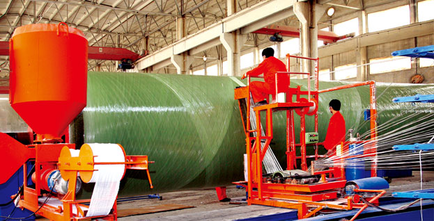 臥式玻璃鋼儲罐介紹 臥式玻璃鋼儲罐結構由防腐防滲內襯層、增強結構層、外表抗老化層組成。確保既有良好的耐介質腐蝕性,又具有足夠的物理機械性能滿足盛裝要求。 臥式玻璃鋼儲罐設計...